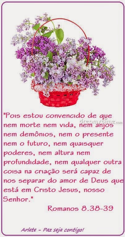 Nada Me Separa Do Amor De Deus Versículo : .nada me afastara do amor de deus, nada porque eu estou bem certo que nem a morte e a vida nem anjos, nem nem poderes, nem o porvir nem profundidade, nem altura nem qualquer outra criatura podera me separar do amor de deus.