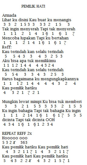 Djadisatube Not Angka Piano Lirik Lagu Armada Pemilik Hati - Berikut ini adalah chord kunci gitar lagu 1 hari yang cerah intro g d/f# em c d g d/f# em oh yang terindah di sana c d…